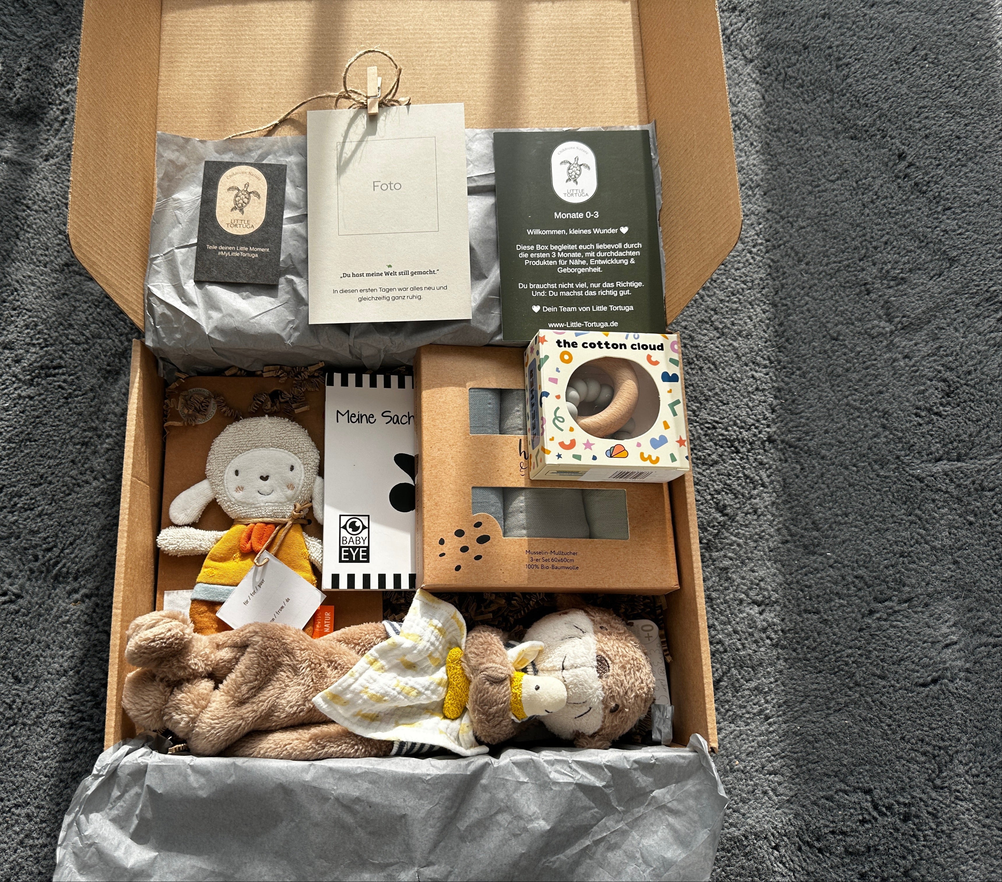 ⭐️⭐️⭐️⭐️⭐️ Die Box ist einfach perfekt, wir haben sie zur Geburt verschenkt! 🎁 Ich war begeistert, wie liebevoll und durchdacht die Auswahl der Spielsachen ist – alles altersgerecht, hochwertig und super süß 🥰. Besonders toll finde ich, dass man sich weder um den Inhalt noch um das Verpacken kümmern muss. Die Box ist so schön gestaltet, dass man sie direkt verschenken kann – stressfrei und mit Wow-Effekt. Die Lieferung erfolgte schnell und die Geschenkbox war absolut sicher verpackt. Ich bin rundum zufrieden und werde sie bestimmt nochmal in Betracht ziehen. Absolute Empfehlung! 👍🏻