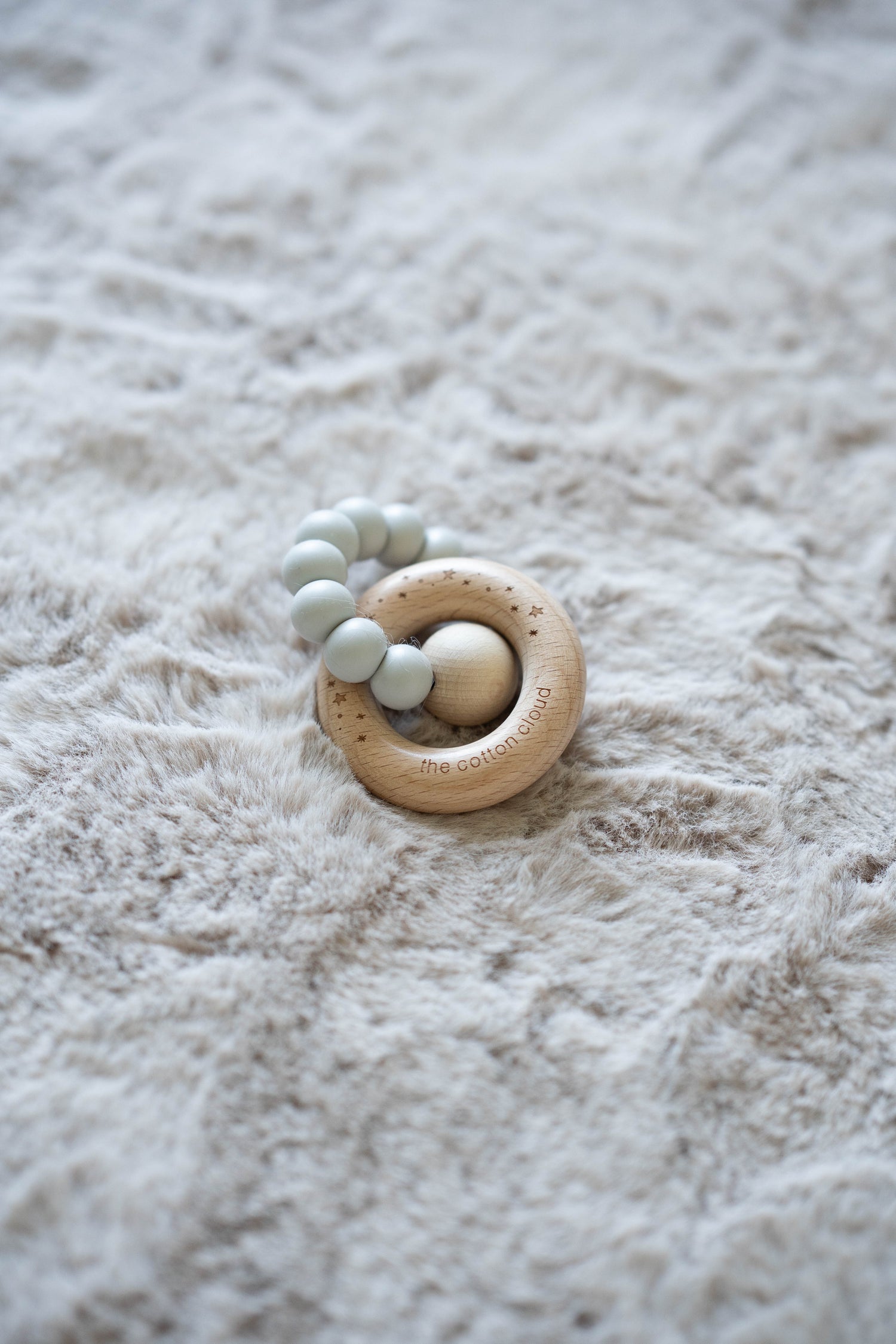 Der Natur Greifling verbindet warmes Holz mit weichem Silikon, perfekt, um die Welt mit kleinen Händen zu entdecken.