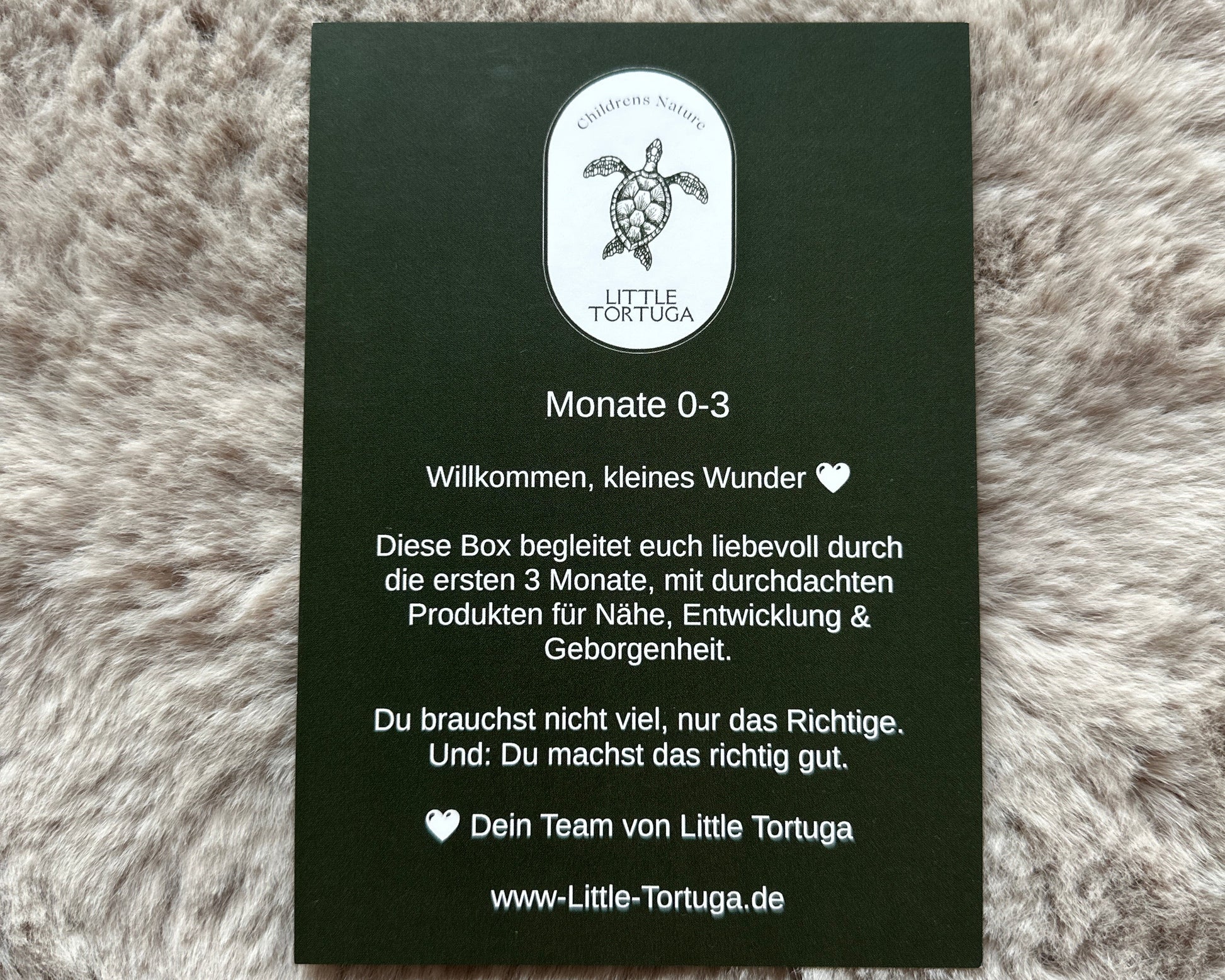 Die Little Tortuga Begrüßungskarte begleitet euch durch die ersten Monate mit Wärme und Vertrauen.