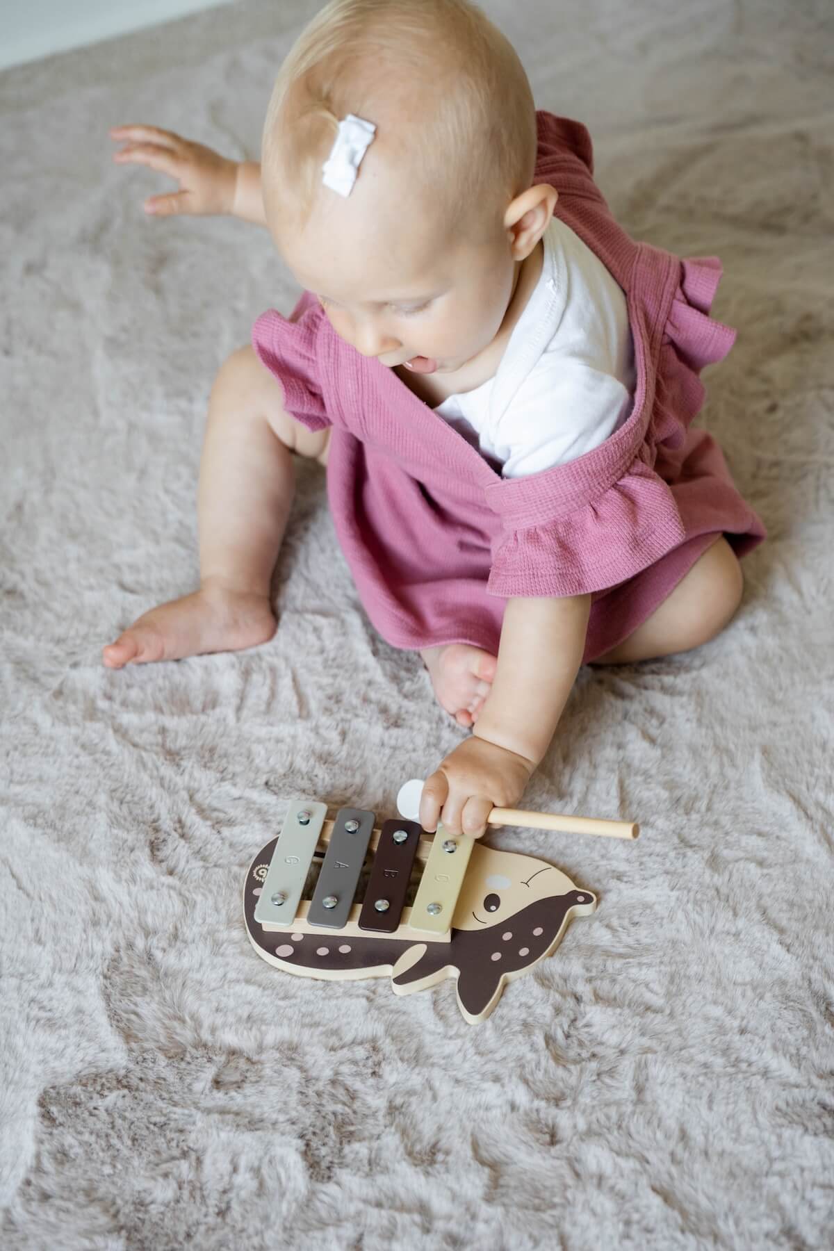 Dieses Xylophon aus Holz und Metall ist perfekt auf kleine Hände abgestimmt.