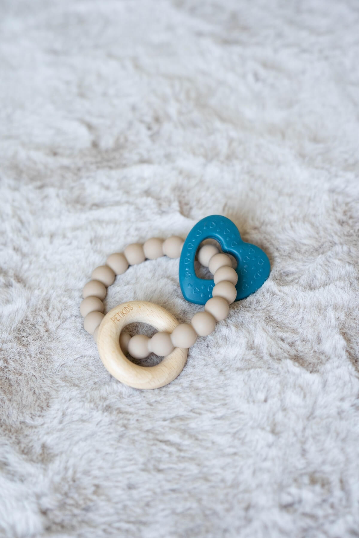 Der Beißring aus Silikon und Holz ist schadstofffrei, sicher und liebevoll verarbeitet.