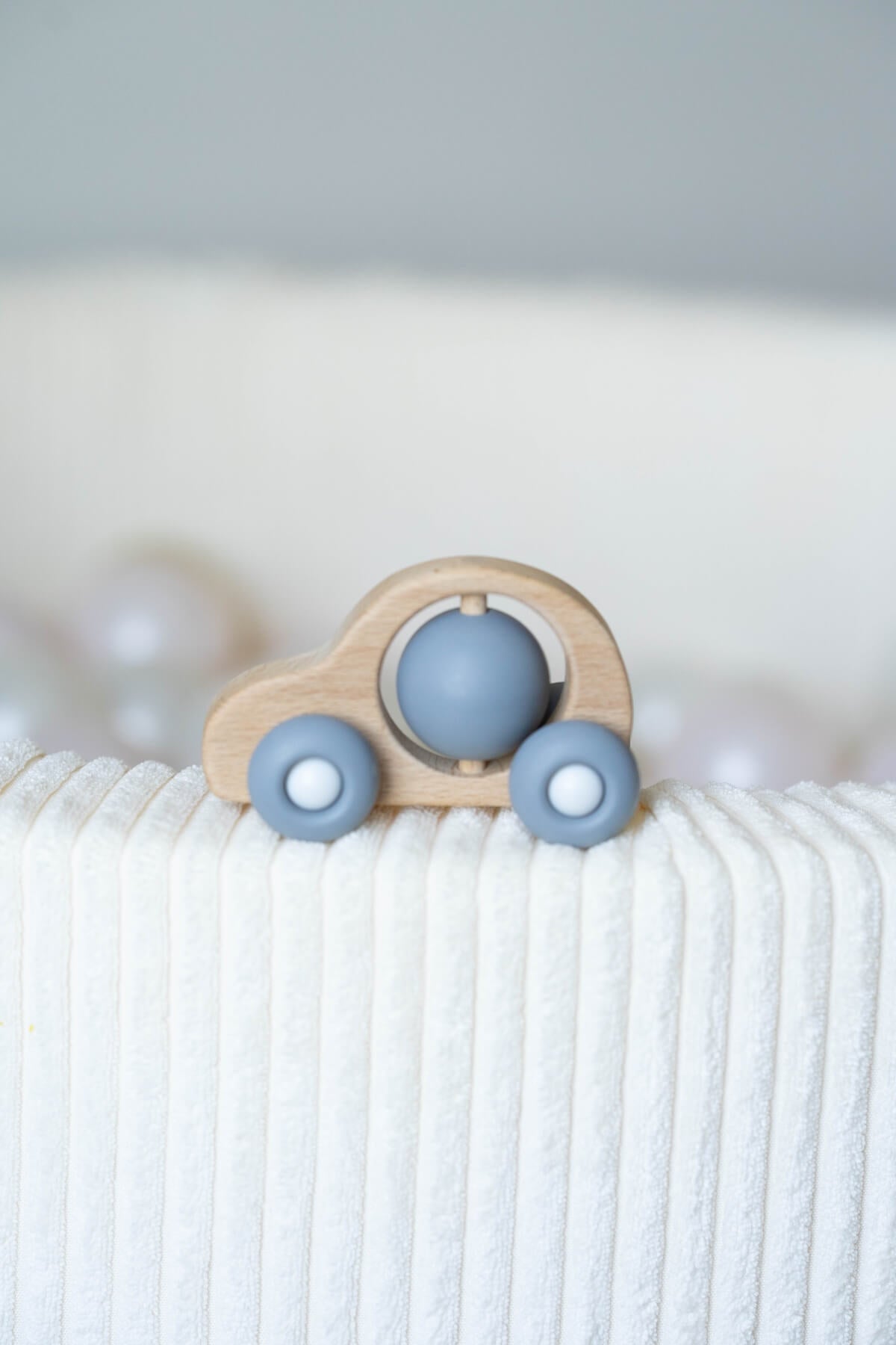 Dieses liebevoll gestaltete Holzauto lädt zum Schieben, Rollen und Entdecken ein.